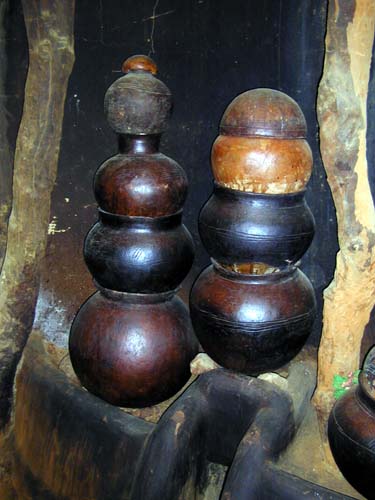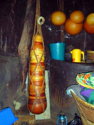 Dans la première pièce se trouvent les callebasses, les paniers et quelques instruments de cuisine. |
